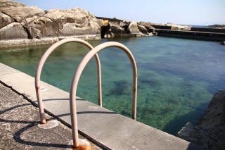付近には岩礁を縦25m、横13mに掘った塩水プールがある。元々は魚を鑑賞するために掘られた水槽で、戦後地元の水泳協会が寄付を集め、水泳用の練習プールになった。