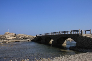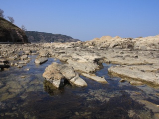 東西400メートル、南北150メートルにわたる海蝕作用でできた白っぽい岩礁が広がる、海岸沿いを1周するコースは磯遊びや釣りに最適です。