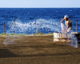 「珠洲製塩」の製塩場がある海岸は、日本列島のほぼ中間にある、日本海に突き出た能登半島の北端に位置しています。北からは千島寒流が、南からは対馬暖流がぶつかり合っており、ミネラルをたっぷり含んだ上質の海水が豊富にあります。この海水を原材料として、塩作りの長い歴史から育まれた技で生産される塩は、とてもおいしいと好評です。