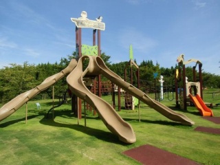 大型複合遊具や健康遊具のある「子供の広場」や、アスレチック遊具のある「冒険の森」、地元産木材を使った橋梁型遊具の「わくわくブリッジ」など遊具が充実しています。テニスなどのスポーツや、丘陵地の地形を活かした園内散策もできます。「でか山展望台」からは、七尾市街や七尾湾の眺望を楽めます。