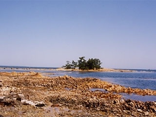 - 福浦地区から巌門に至る途中にあります。島の中央には湧水が出ており、中に碁盤形の岩塊が沈んでいます。その昔、義経と弁慶がここで囲碁を楽しんだと伝わることから、碁盤島と呼ばれています。