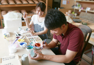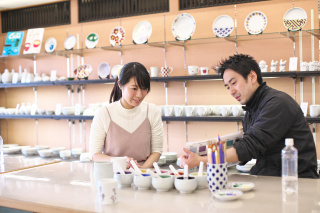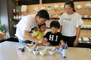 - 湯呑み、マグカップ、花瓶、皿など、いろいろな絵付をご体験いただけます。