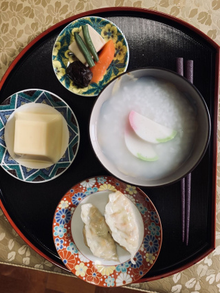- 座禅体験と、寺院住職の説法と「食」についての感謝の気持ちを込め、朝がゆをいただきます。