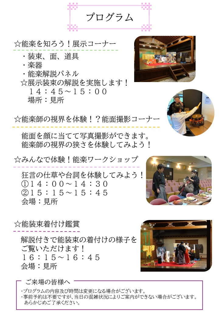 能楽堂で「能楽」を気軽に楽しく学び、体験できるイベントです。