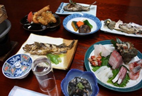 宿のすぐ前には静かな砂浜の海岸があります。能登島ならではの新鮮な食材が堪能できます。