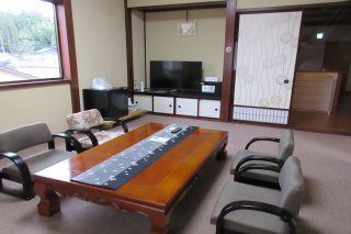 プライベート・グループ・ファミリー旅行に最適なお部屋です。【和室10畳・和室8畳・ツインルーム7畳の3部屋】をアジョイニングタイプとしてご利用いただけます。お食事処は、大きな囲炉裏のあるお座敷でノンビリ、ゆったりと、おくつろぎいただけます。四季折々の地元産の魚介類、肉類などをメインに、旬の食材を使ったマスターの心尽くしのヘルシーでボリューム感のある『和風割烹料理』です。新鮮なお刺身、炭火焼きのお魚などもご堪能いただけます。『能登牛ステーキコース』をチョイスすることも出来ます。