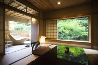 湯元ならではの豊富な湯量(約10万リットル)を誇る源泉かけ流しの大浴場と露天風呂、伝統が育んだ美器佳肴のお料理とおもてなしの心を大切にしております。大正時代には稀代の芸術家「北大路魯山人」も逗留され、当時の作品を館内に展示しております。