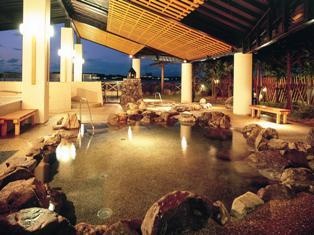 柴山潟に浮かび、350坪を超える大浴場夢湯パークが人気の、お風呂自慢の宿です。
