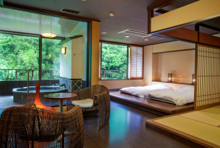 - 加賀温泉駅から北鉄加賀バス 温泉山中線(2番のりば)で31分 → 山中温泉バスターミナルバス停から約1.6km