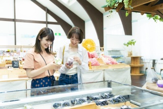 直営カフェではとれたて・もぎたてのフルーツを楽しめます。