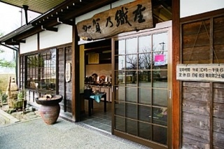 牛首紬のギャラリースペースです。牛首紬の反物や帯、小物類など多数取りそろえています。