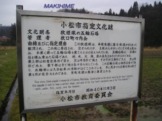 小松市指定文化財・文化財名=牧姫塚の五輪石塔、管理者=牧口町々内会