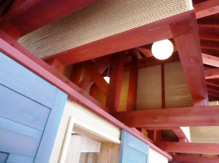 建物は加賀東谷の建物にあわせた木造建築で、赤瓦の屋根や土壁などを用いた構造になっています。また、天井の代わりに側面のみに麻縄を巻いた箱を配置しました。換気を良くし、地元の人と他から来る人とのふれあいが生まれやすいようになっています。