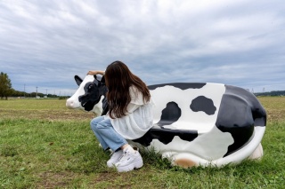 「夢広場」には、「とうもろこし巨大迷路」や「丸太の一本橋」などがあり、馬やうさぎにえさもあげられます。牧草地で思い切り体を動かし、動物とたくさんふれあい、充実した時間を過ごすことができます。トイレの小屋が牛の形をしているのでこちらにもぜひご注目を!