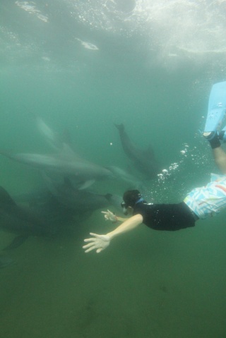 能登島に生息する野生のイルカと泳いだり、観察することができます。