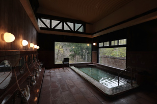 浴場の大きな窓からは瀬波川の沢や自然林が見渡せます。お湯はサラッとなめらかな感じ。