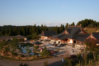 台湾檜を用いた左右75mもある壮大な木造建物で、平安時代の建築様式である寝殿造りを採り入れてあり、荘厳優雅な雰囲気が漂っています。