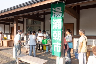 そんな湯涌温泉では、4月から12月の毎週日曜日に朝市が開かれています。地元農家が育てた新鮮な野菜や、手作りのおはぎなど、ここでしか買うことができない品揃えが特徴です。