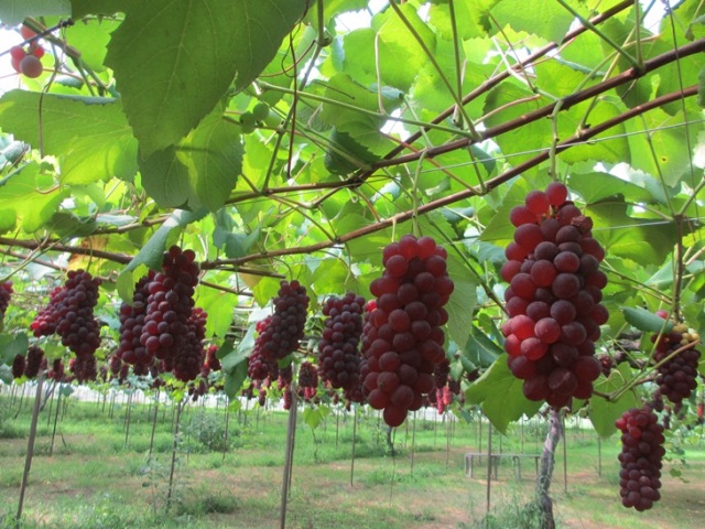 全天候型ハウスで雨の日でもぶどう狩りを楽しむことができます。