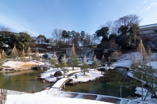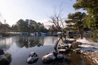 冬の冷え込んだ日には雪をかぶった徽軫灯籠や金沢城の石垣、氷の張った霞ヶ池といった金沢の冬を象徴する風景に出合えることも。凛とした冷たい空気を肌に感じながら、清々しい気分に浸ってみませんか?