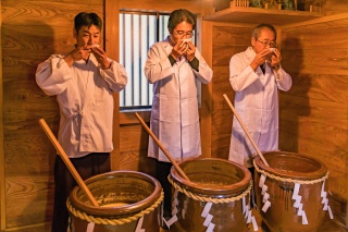 天日陰比咩神社あめひかげひめじんじゃ(二宮神社)は第十代崇神天皇の御代に御鎮座の官幣社で二千有余年の歴史をもつ延喜式内社で能登國二ノ宮です。神事お供え用のどぶろくです。12月5日~3月上旬までは、ご祈祷やお祓いを受けられた方々へ、お下がりとして授与しております。当神社は酒造りの祖神と云われる大三輪の神が祭られ、往古より酒造りが伝承され、このみくりやで醸造された濁酒は12月5日の新嘗祭(どぶろく祭り)にお供へし、祭典終了後、参拝客に振る舞われる。殊に正月三ケ日は、初詣の参拝客にもれなく振る舞われ喜ばれている根廻り2m、南枝10m、西枝6mの二枝に別れ、樹齢600年余りの大木で、南と西に枝が別れ、竜の形をしていることから「龍髭(りゅうしゅ)楓」と云われている。中能登町文化財に指定されている。