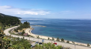 サイト内にある展望台からは、白い砂浜と日本海の青い海、能登半島が一望でき、まさに絶景。
