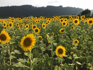 ひまわり畑は、レジャー施設「バードハミング鳥越」の横にあり、見ごろは7月下旬~8月上旬です。