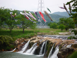 その名の通り、郷谷川の流れがここで12の筋に分かれて落下している。音を立てて豪快に流れ落ちる光景は、いつ訪れても見ごたえ抜群。特に4月から6月にかけては雪解けで増水するので、さらに迫力満点。