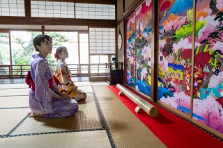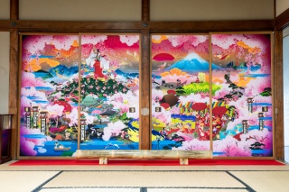 京都を拠点に活動する絵描きユニット「だるま商店」の島氏・安西氏が手掛けた「極彩色皇華能登行幸絵図」