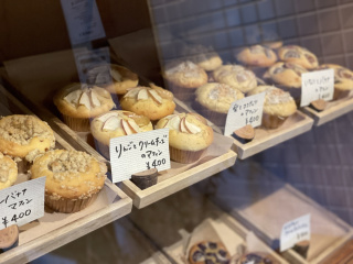 ショーケースには、さまざまなマフィンやタルトなどが並びます。