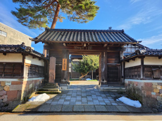 【法華宗】寺内の鬼子母神堂には安宅関の沖合より浮かび上がったといわれる鬼面があり、年1回節分会に開帳されます。本堂板戸に描かれた絵は、江戸時代の画家・俵屋宗達の作とされています。境内には幕末に勤王説を唱えた藩士・福岡惣助の墓があります。