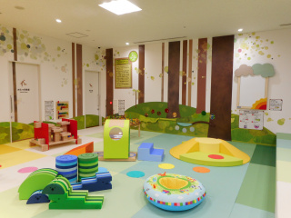『すくすくひろば』は、 子どもの遊び場を全国展開しているボーネルンドがプロデュースする遊び場です。 大型遊具で思いっきり体を動かせる『どきどきゾーン』と知育玩具などでとことん遊べる『わくわくゾーン』、 赤ちゃんが安心して遊べる『にこにこゾーン』の3つのゾーンで構成されています。