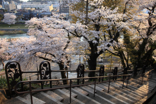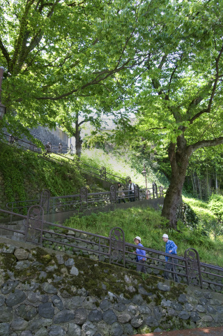 「W」の文字を描くようにジグザグになった階段状の坂道で、室生犀星のお気に入りの散歩道だったという場所です。藩政時代には、坂の上に石工の職人町があったことから「石伐坂」の名が付いたようです。