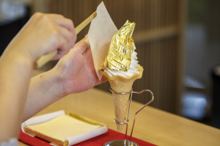 また、テイクアウト形式で金箔ソフトクリームを販売しております。