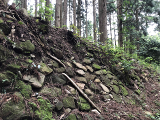 戦国時代末に造成された石垣と土塁が広範囲に残る城跡として貴重です。