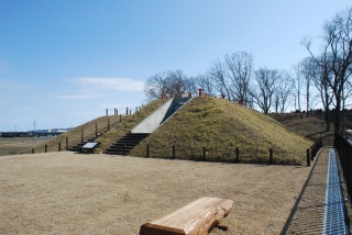 1号墳では、墳丘を覆っていた葺石(ふきいし)を、2号墳では埴輪が復元されており、その埋葬施設を間近で見学できる展示室も設けられています。