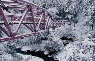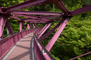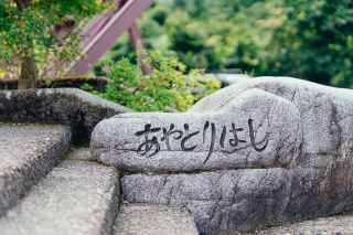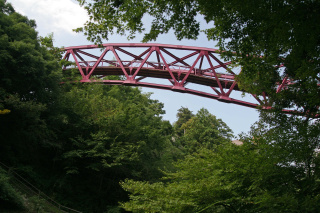他に類のない形状と美しい紅紫色のモダンさ、橋上から眺める鶴仙渓は絶景です。