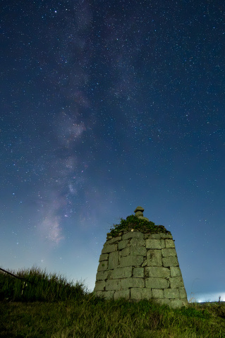 能登半島国定公園・大島海岸には、日本海のさざ波が打ち寄せる大島諸願堂の端に、石積の六角地蔵塔が物悲しくたたずんでいます。
