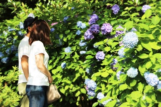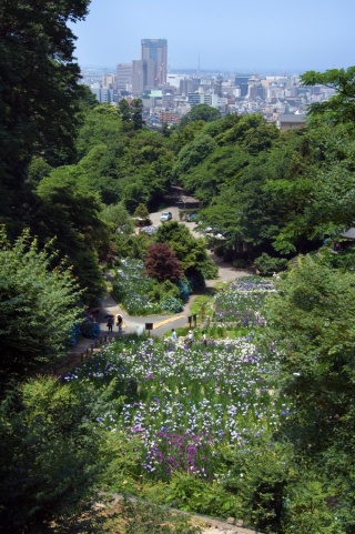 花菖蒲やアジサイが美しい「花菖蒲園」。金沢市街を一望する卯辰山公園内にあり、晴れた日には日本海が見える望湖台からの眺望も人気。花菖蒲は約100種20万株、紫陽花は2,900株植えこまれています。