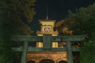 「神門」の最上階にはめ込まれたステンドグラスは特に印象的で、優しい明かりが灯される夜には幻想的な雰囲気で辺りを包み込みます。現存する日本最古の避雷針もあります。