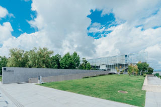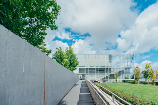目を引くガラス張りの建築は谷口吉生氏の設計