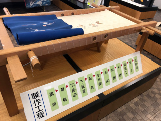 「美川刺しゅうの里」2階展示コーナーには、伝統工芸作品が展示されています。