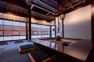 築199年の金沢で一番大きなお茶屋建築であり、金沢市指定保存建造物です。その中は金箔の水引で織られた畳の茶室、輪島塗の朱階段、加賀友禅の花嫁暖簾、夜は今も一見さんお断りで「一客一亭」のお座敷があげられているお部屋などがあり、全てを見学することができます。名物「黄金くずきり」などの甘味を楽しめるカフェやオリジナル商品を販売する蔵のお店も併設。季節ごとにお茶屋遊びを体験して頂ける「艶遊会」を開催。詳細はHPをご覧ください。
