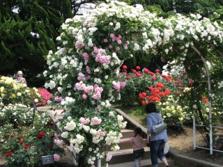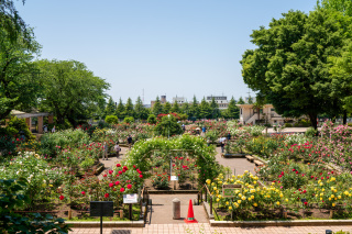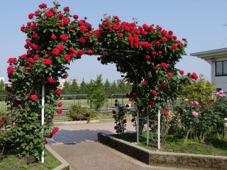 約143品種、約1,800本のバラがアーチ仕立てやフェンス仕立てにより、立体的に飾られロマンチックな雰囲気を醸し出しています。開花時期には園内にバラの香りが漂っています。見ごろは5月中旬~6月上旬と9月下旬~10月中旬です。