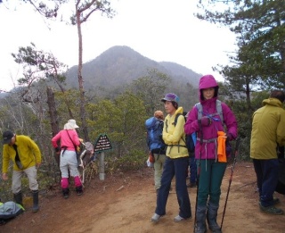 標高478メートル。鞍掛山は気軽に上れる山で、登山道には美しい自然が広がります。ルートとしては、急斜面を一気に登る中の谷と、駐車場があり、山頂まで杭に距離数を表示してある西の谷の2つがあります。