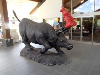 倶利伽羅源平の郷・竹橋口は、古代から現代に至るまで、倶利伽羅峠が果たしてきた役割をパネルなどを通して知ることができる歴史資料館です。木曽義仲の奇襲戦法「火牛の計」のモニュメントや、その壮絶な戦いを描いた「源平倶利伽羅合戦図屏風」のレプリカなどが展示されています。
