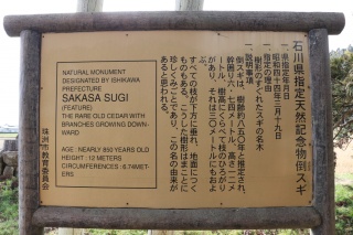 真言宗の古刹・高照寺の門前にある老杉です。樹齢は約700年とも言われ、県の天然記念物に指定されています。杉の枝が地面を這うようにして、逆さに垂れていることから「倒さ(さかさ)スギ」と呼ばれるようになりました。