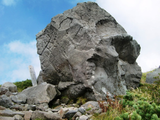 白山登山道の砂防新道を3時間ほど歩いたところにある「黒ボコ岩」直下にあります。