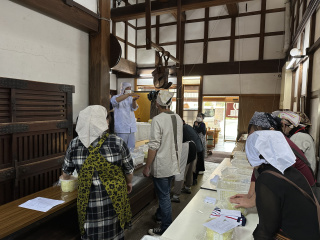 - あらかじめ塩漬けしたかぶに鰤の切り身を挟み、糀でくるんで小さな桶に漬け込む体験。漬け込んだかぶら寿しは樽ごと持ち帰り、数日後に熟成して食べごろを迎えます。