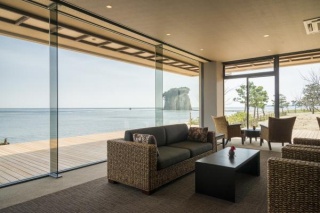 目の前には「軍艦島」ともいわれる特異な姿をした見附島が浮かんでいます。天気が良い日には、客室や浴場から立山連峰の稜線(りょうせん)を望むこともできます。